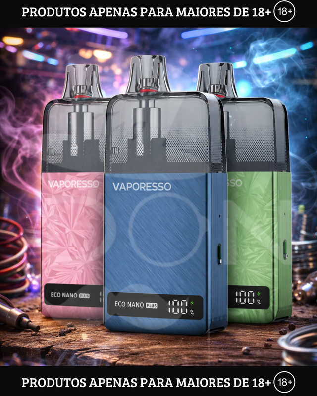 Adquira o Vaporesso ECO Nano PLUS Pod System, com bateria integrada de 1400mAh, detecção inteligente de resistência e um pod recarregável de 10mL para um vapor deliciosamente rico.
